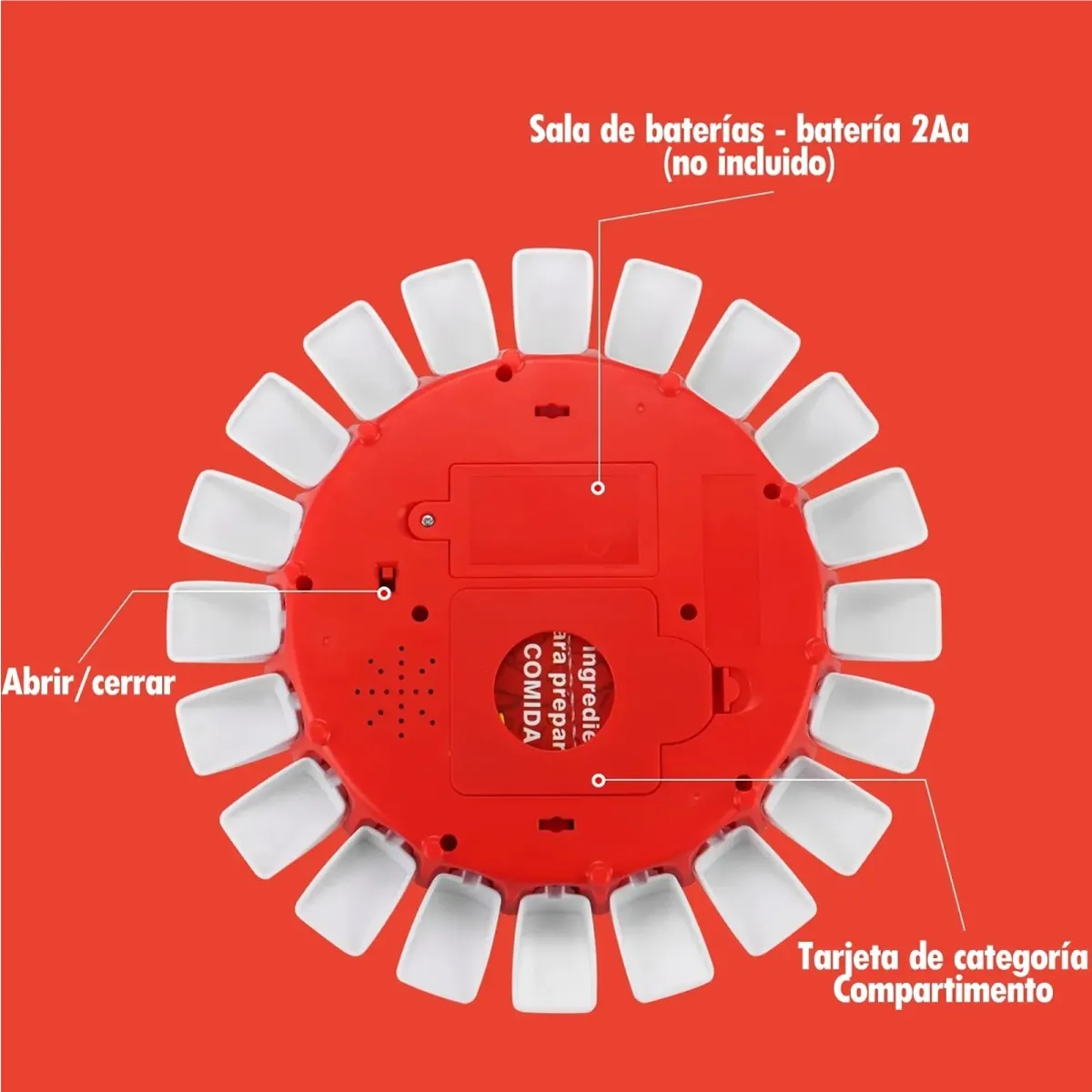 Incluye dispositivo de letras abatibles, cartas con categorías y cronómetro.
