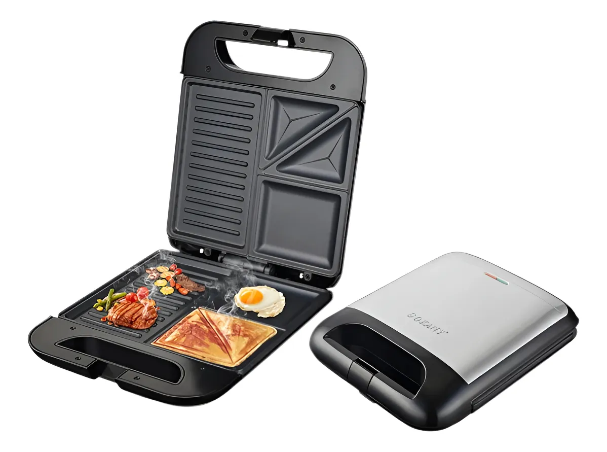 Diseño multifuncional 3 en 1, que permite usarla como sanduchera, parrilla y grill